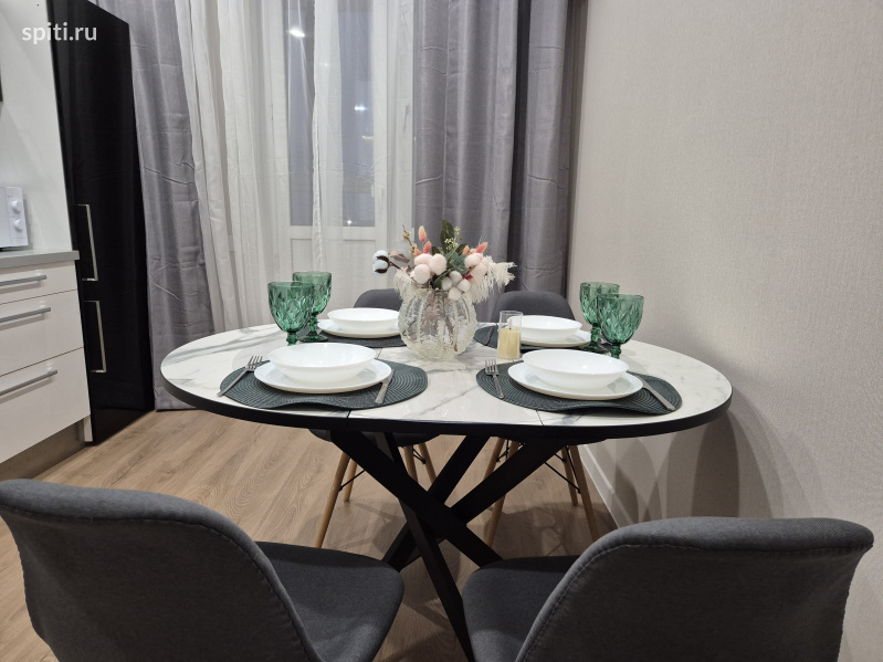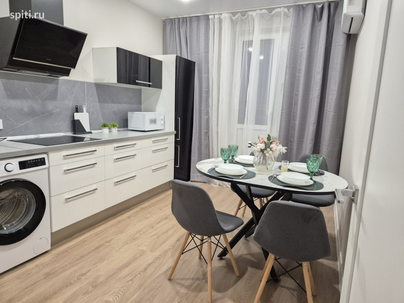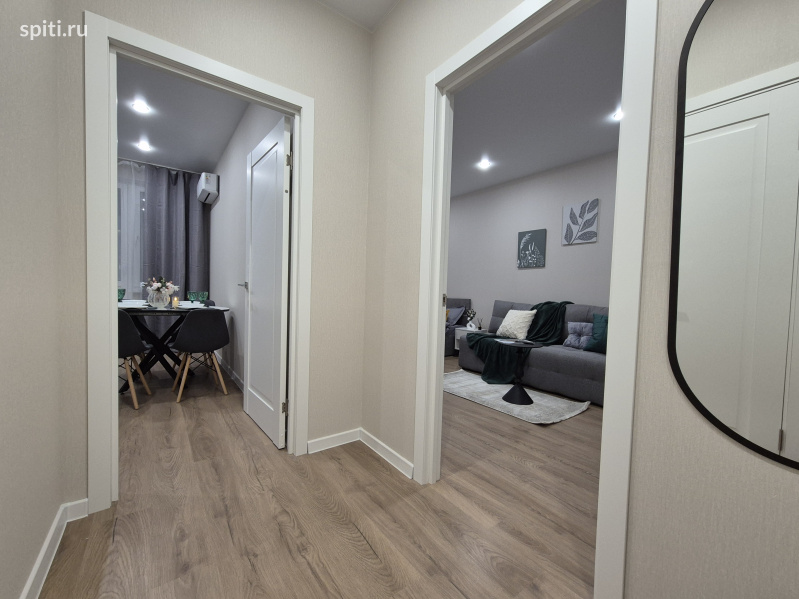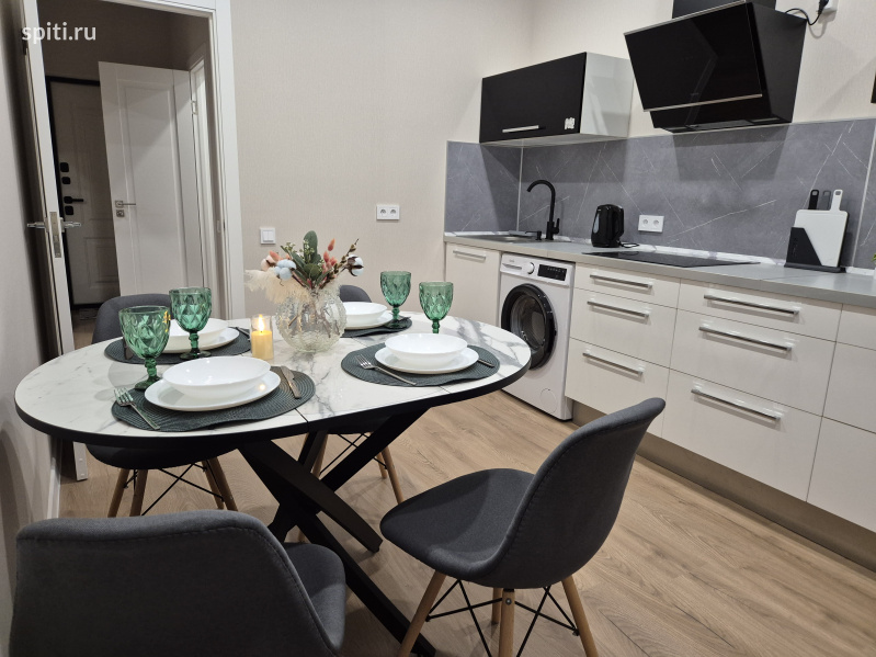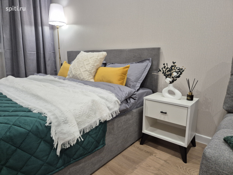 Сдаётся стильная квартира посуточно в ЖК Небо на ул. Ярославская, идеально подходящая для комфортного проживания до 4-х гостей. Расположена рядом с Университетом МВД и Высшим военным училищем им.Штеменко ✨ Что вас ждёт: • Спальная зона: большая двуспальная кровать 160×200. Здесь каждое утро начинается с лёгкости и свежести! • Зона отдыха: Современный диван-софа приглашает вас провести вечер за просмотром любимых фильмов или погружением в захватывающую книгу. • Дизайн и атмосфера: Интерьер квартиры создан в гармонии спокойных современных оттенков — серого, бежевого и приглушённо-зелёного. Элементы декора, такие как картины с растительными мотивами и мягкое освещение-торшер наполняют пространство атмосферой уюта и расслабления. • Удобства: Прикроватная тумба для мелочей, стильный журнальный столик, быстрый Wi-Fi, телевизор для ваших любимых фильмов или телепередач, полностью оборудованная кухня с плитой, микроволновкой и посудой. Уютный сервированный стол готов к романтическому ужину или дружеским посиделкам. Закрытый двор и парковка для вашего автомобиля включены в стоимость. ???? Инфраструктура: -Университет МВД- 2 мин пешком -Высшее военное училища им. Штеменко -5-7 мин пешком -Высшее военное авиационное училище лётчиков 15 мин пешком - ТЦ Красная площадь всего в 5 минутах езды - Выставочный комплекс Экспоград-Юг в 10 минутах на автомобиле -Баскет Холл – в 10 минутах на автомобиле -Центр города Краснодар и ул. Красная – всего 15 минут пути Удобное расположение позволяет легко добраться до любых уголков Краснодара. ???? Дополнительная информация: Выезд до 12:00, заеду с 14.00 • Курение запрещено (есть отдельное место для курения) • Размещение домашних животных возможно по согласованию с доп оплатой -Заселение строго по паспорту и договору онлайн за 2 мин При заселении берётся залог 2000????, который возвращается в течение дня после уборки, при сохранности имущества квартиры.